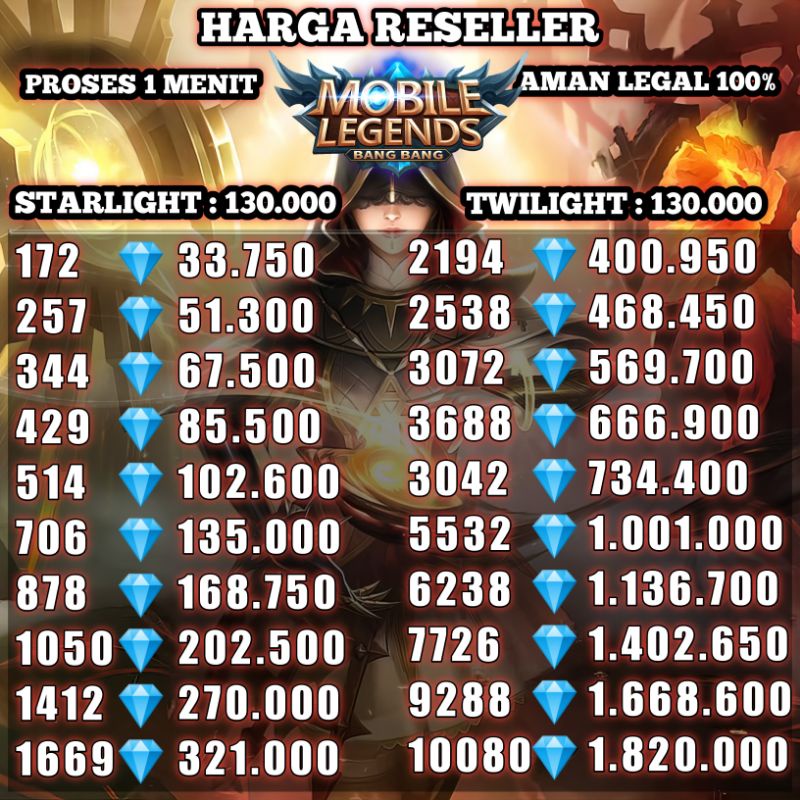 Harga diamond yang paling murah. 36 Free Diamond - Rp 10550 75 Free Diamond - Rp 22675 167 Free Diamond - Rp 47775. Event Promo Diamond Mlbb Moonton sering mengadakan event menarik pada game mobile legends.